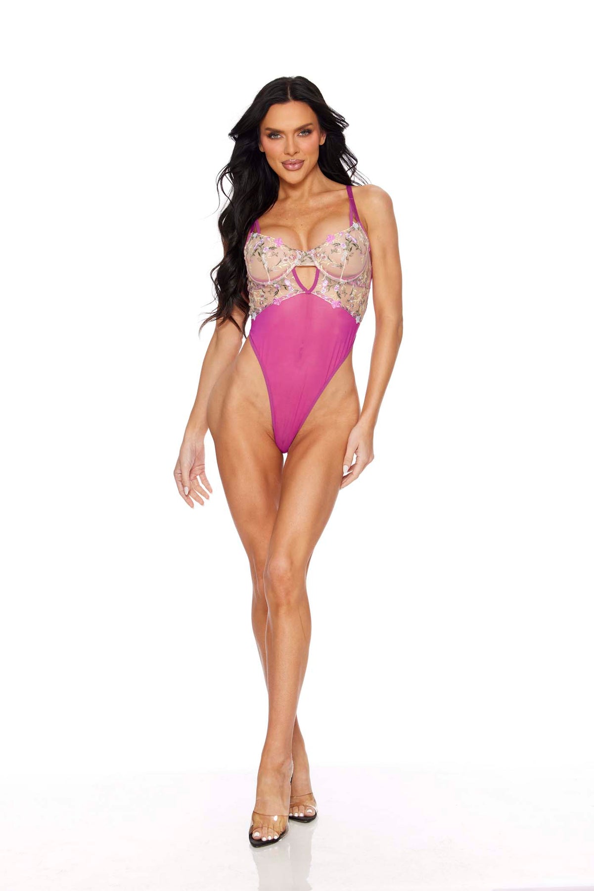 Elevate your dance floor style with this stunning 2PC jeweled dancewear set that combines bold color blocking with dazzling sparkle. The triangle top features intricate jewel detailing that catches the light with every move, while the coordinating thong back ensures a sleek, seamless silhouette. The crisp white base contrasts beautifully with hot pink accents, creating a look that's both eye-catching and versatile. Perfect for performances, competitions, or turning heads at any dance event, this set delivers confidence and glamour in one fabulous package.