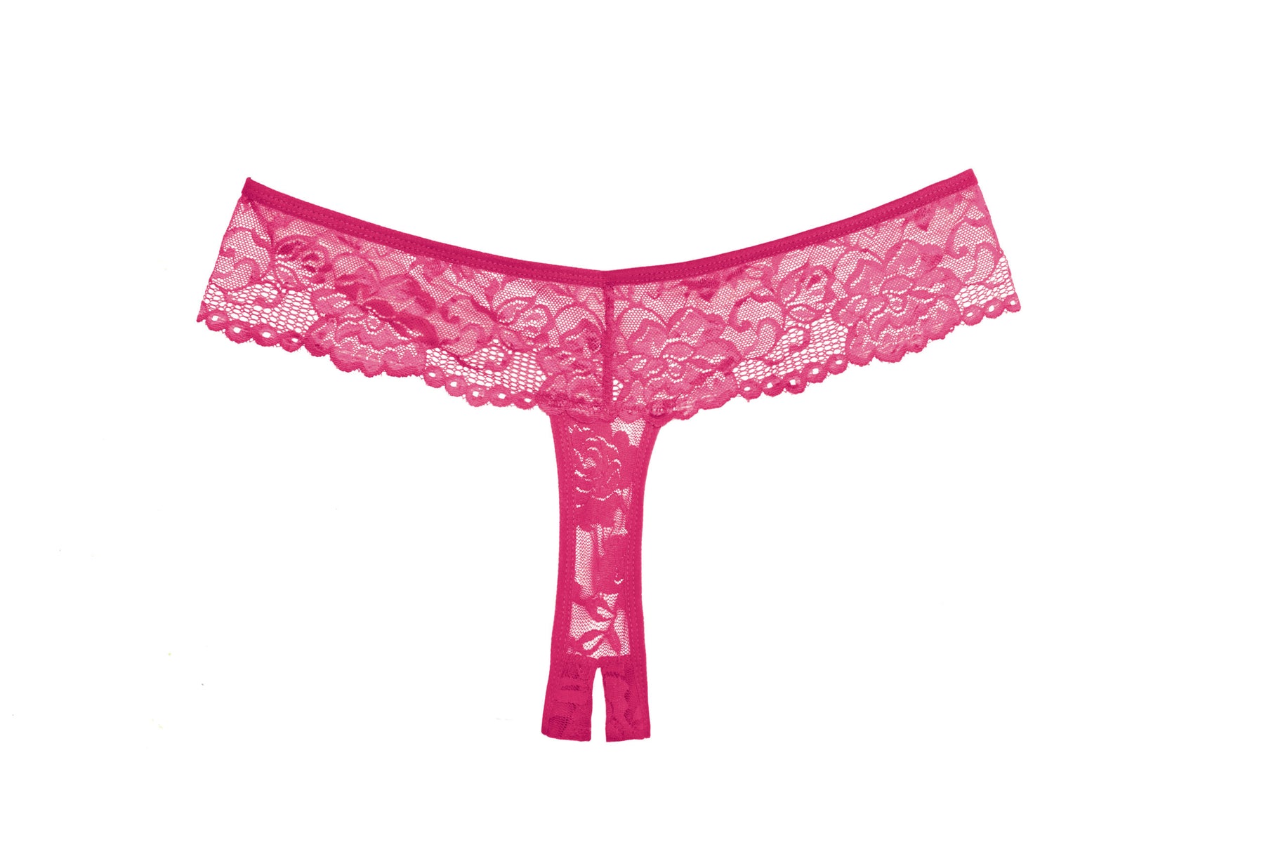 Sumptuous lace wraps your hips in this dreamy all lace crotchless thong.