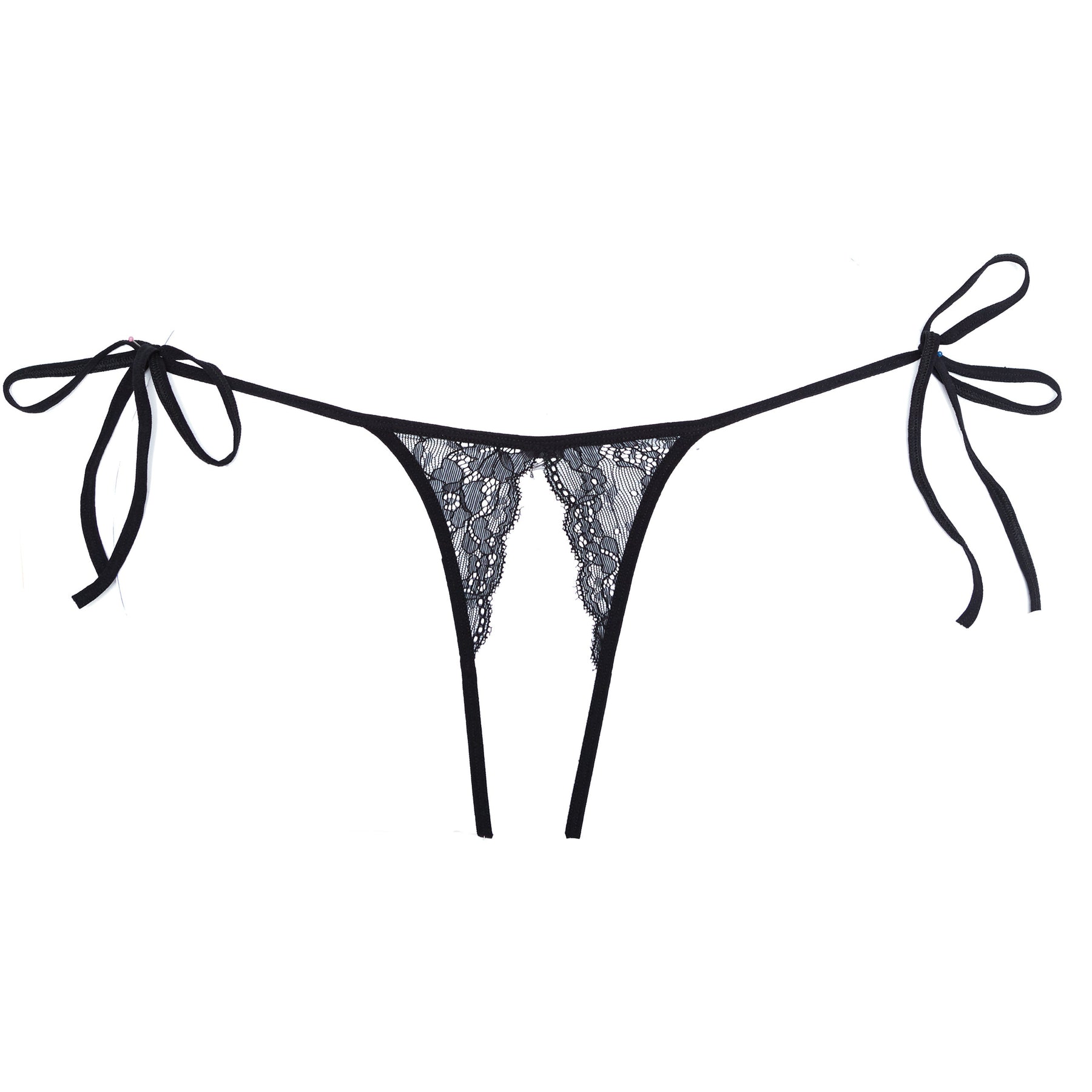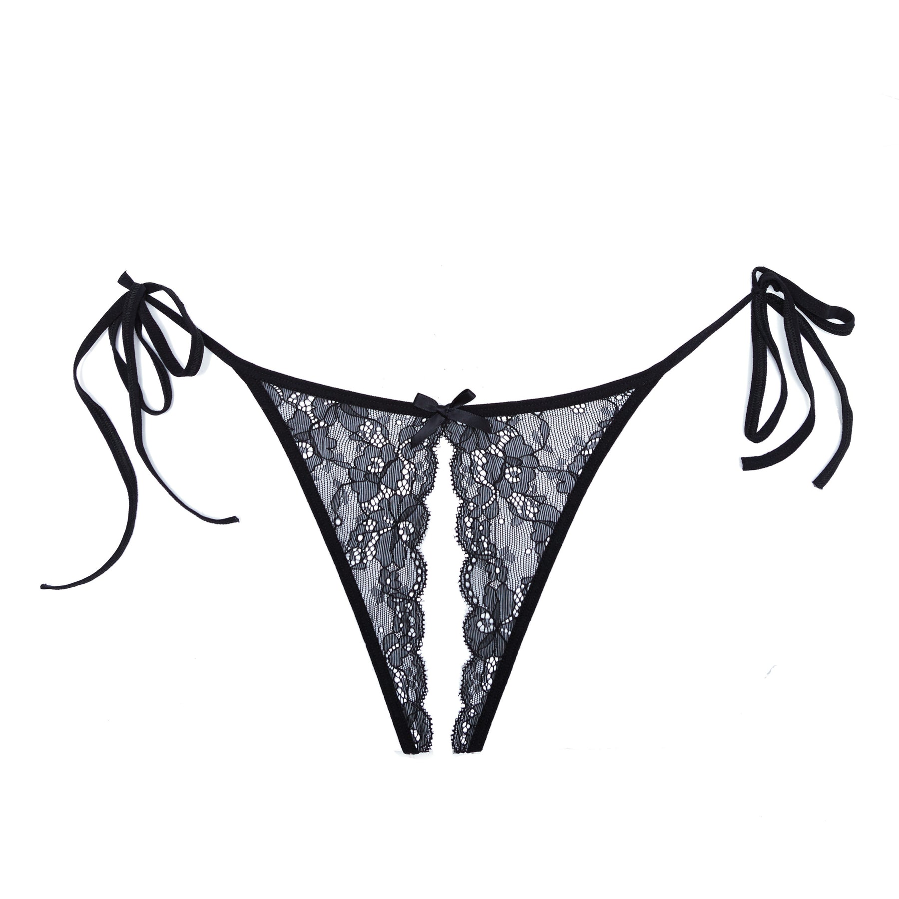Dainty. Sexy. Sweet. All Sugar. Ouverte front & back lace panty with tie up sides. Crotchless.
