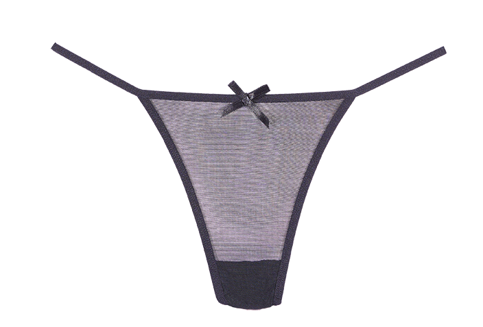 Effortlessly flirtatious, with a dose of cheeky.Full mesh front thong topped with a mini bow.Scallop lace back with cheeky criss-cross details.