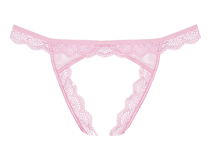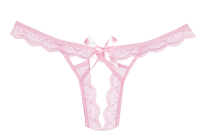 Whimsical… yet sexy as a peach;)Fully open panty with mesh inserts, scalloped lace sides and waist.Topped with a satin bow in front.