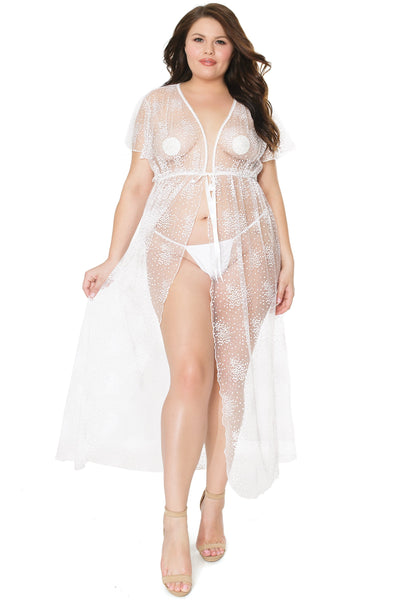 Plus Size Elegant Lace & Chiffon Long Hollywood Glamour Robe