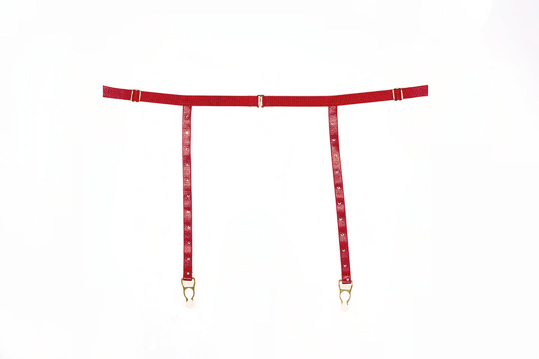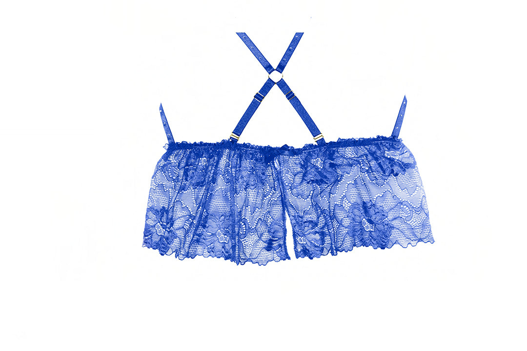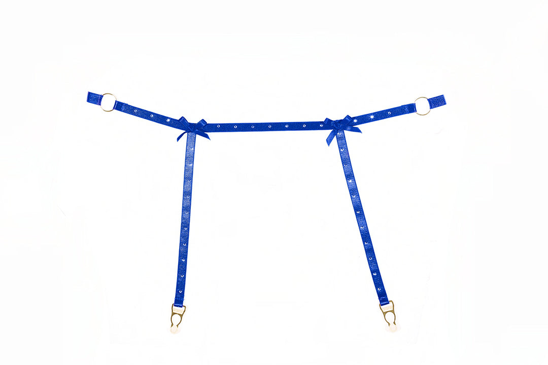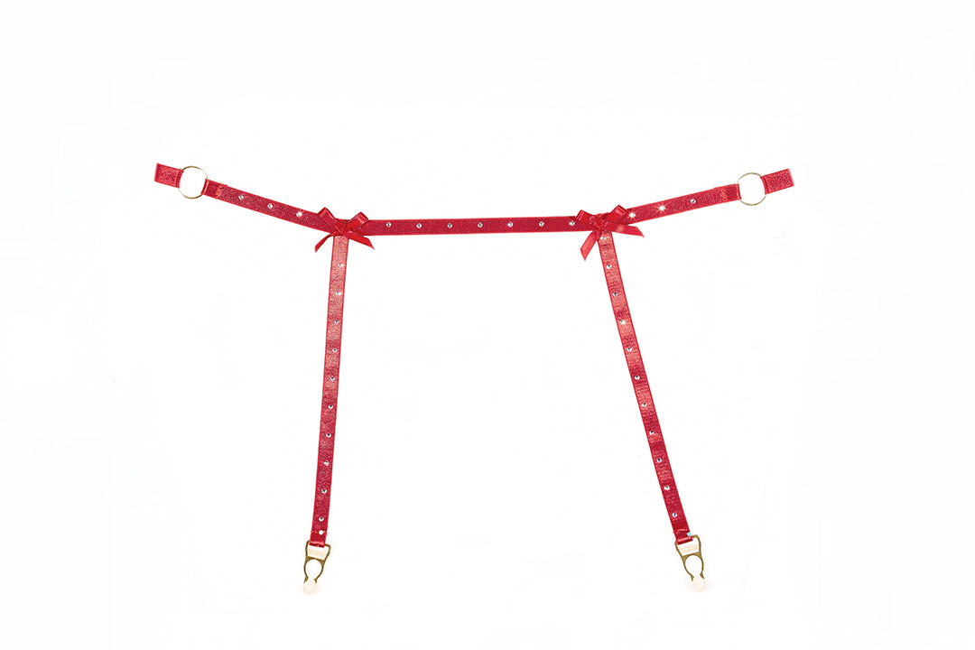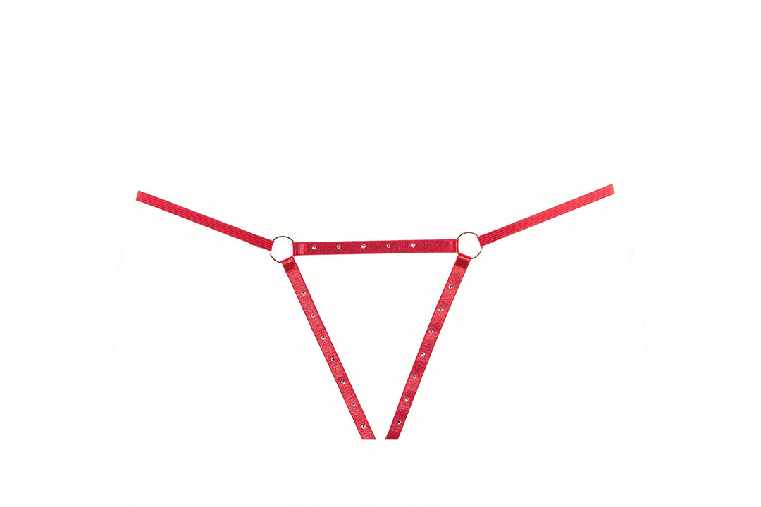 Body harness, bralette & panty Sweet & Sexy, the flirty straps hug, lift and highlight all the right places. Sheer mesh flirts with the idea of showing all of your best assets… (but not all at once.)Sheer bralette has adjustable straps, with hook closure in back, (and is not attached to the harness.)The harness is accented with sheer mesh at the collar and has hook closure at neck and back. The open back panty has a hook closure in back.**This product is packaged in a polybag with hangtag, no box.