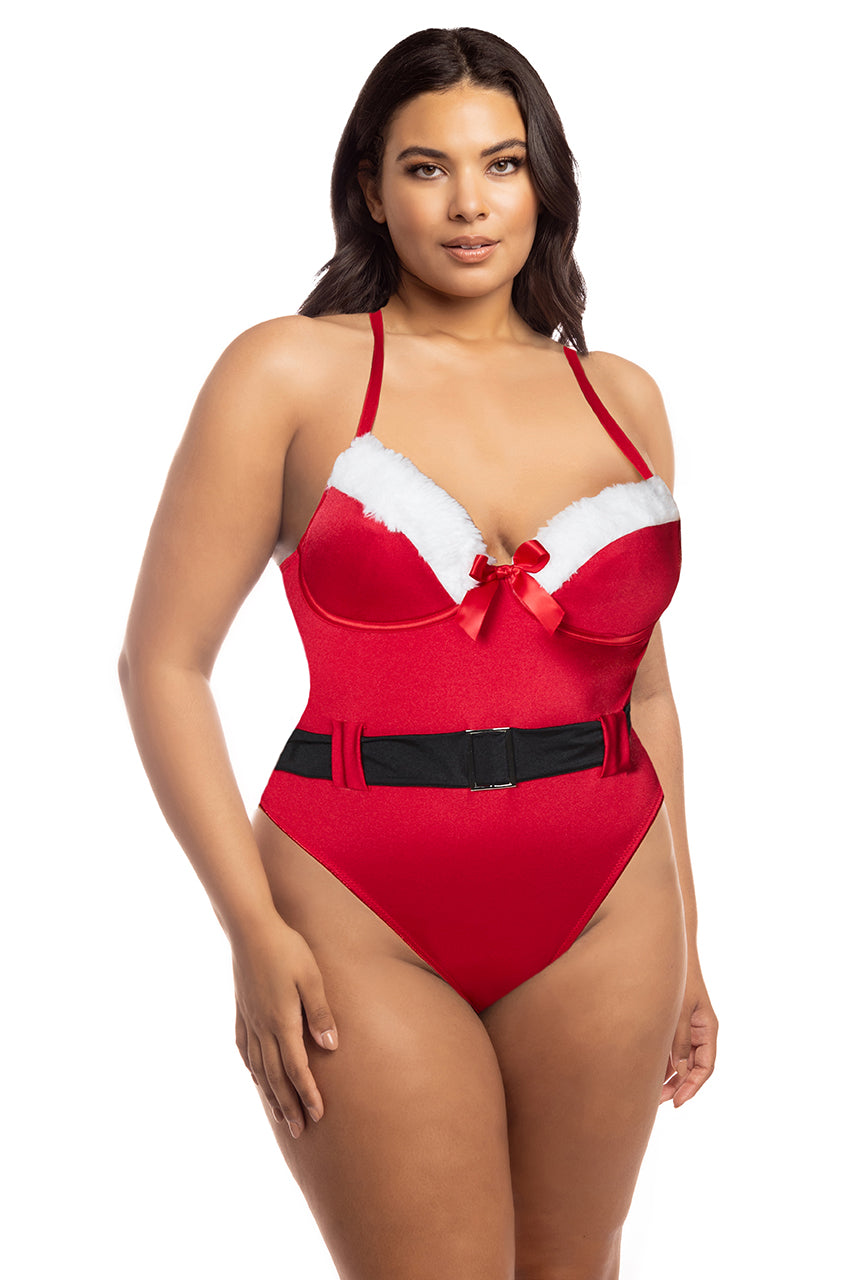 Slip into pure holiday glamour with this show-stopping teddy that's designed to turn heads. Featuring luxuriously padded cups for a flattering silhouette, this piece combines comfort with undeniable allure. The nonfunctional belt cinches your waist for a chic, defined look, while delicate marabou trim adds a touch of feathered elegance and playful sophistication. The striking red and bright white colorway makes a bold statement that's perfect for festive celebrations or intimate moments. Whether you're channeling your inner vixen or simply want to feel fabulous, this teddy delivers confidence and style in one irresistible package.