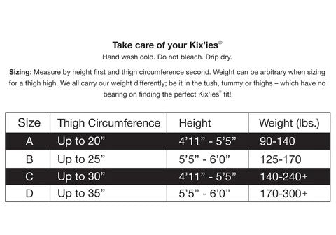 Let's face it, no one likes how regular tights put the squeez on you. And who doesn't breath a huge sigh of relief when they're peeled off after a long day! So kick your bulky, unflattering tights to the curb and fall in love with Kixies. No matter the size, shape, or age, every woman deserves to feel comfortable and have fun.